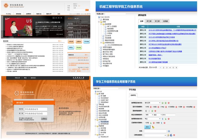 数字校园管理信息平台是针对校园的一体化管理软件,包括行政办公、招生就业、教学管理和教务管理等功能。特色功能为学生管理,囊括本科生管理、研究生管理、团委管理和各学院管理,集成学生学籍信息、课程信息、成绩信息、活动信息和其他各方面信息到学生信息门户。