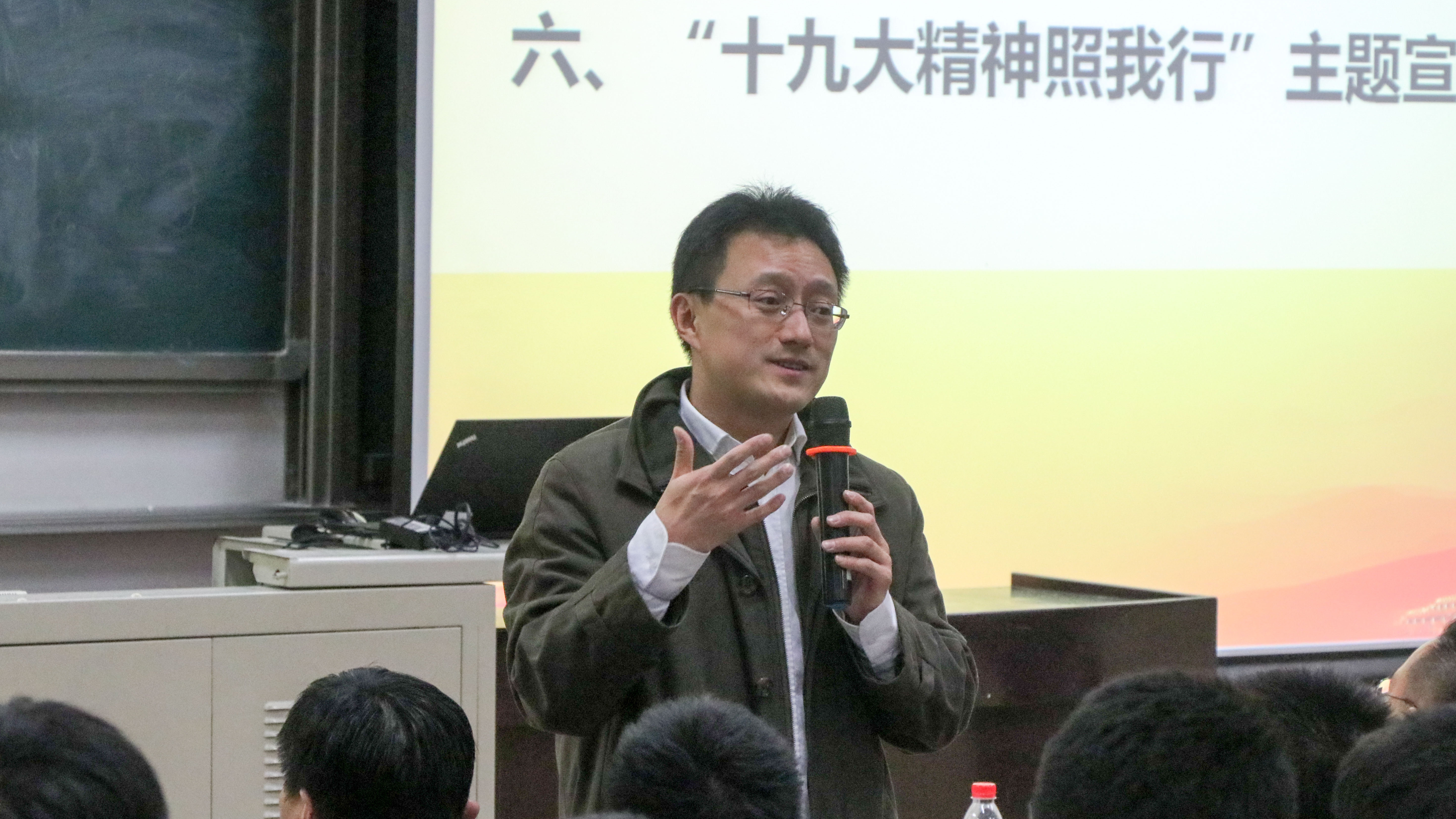 仪式结束后,黄武南为学员带来了以《学习十九大精神,以实际行动入党》为主题的理论报告。报告提纲挈领地从“新时代、新使命、新思想、新征程”四个方面,以生动的事例引入,为学员们诠释了党的十九大精神。黄老师在报告中指出,作为入党积极分子,首先要认真学习理论,坚定理想信念,提高思想认识,真正做到从思想上入党。同时,他指出,学生的天职是学习,科学文化知识是成才报国的物质基础,良好的学业成绩是学生党员先进性在本职岗位上的体现,并鼓励大家以优秀学长学姐为榜样,树立远大目标,刻苦钻研学习,为实现科技报国的梦想奠定坚实基础。