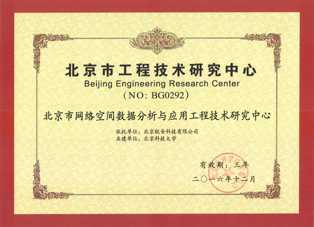 日前,北京市科委公布了2016年度北京市工程技术研究中心认定名单,北京市网络空间数据分析与内容安全工程技术研究中心获批。