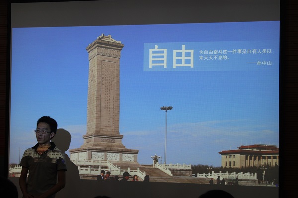 此次理论学习的主题是“社会主义核心价值观与个人价值准则”。活动由“习近平总书记五四讲话精神解读动画”引入话题,然后通信1202班靳京、信安1201班金佩两名学生党员进行了“人民有信仰,国家才有力量:论社会主义核心价值观内容内涵”的主旨宣讲。他们从国家、社会、个人三个层面分别解读了社会主义核心价值观“富强、民主、文明、和谐,自由、平等、公正、法治,爱国、敬业、诚信、友善”24字内涵。