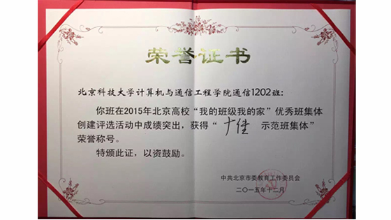 我院通信1202荣获北京高校“我的班级我的家”十佳示范班集体称号