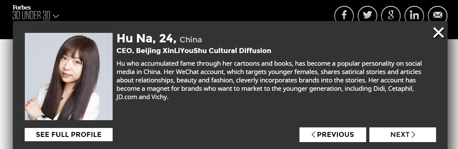 我院院友胡娜入选2017年福布斯亚洲杰出青年榜