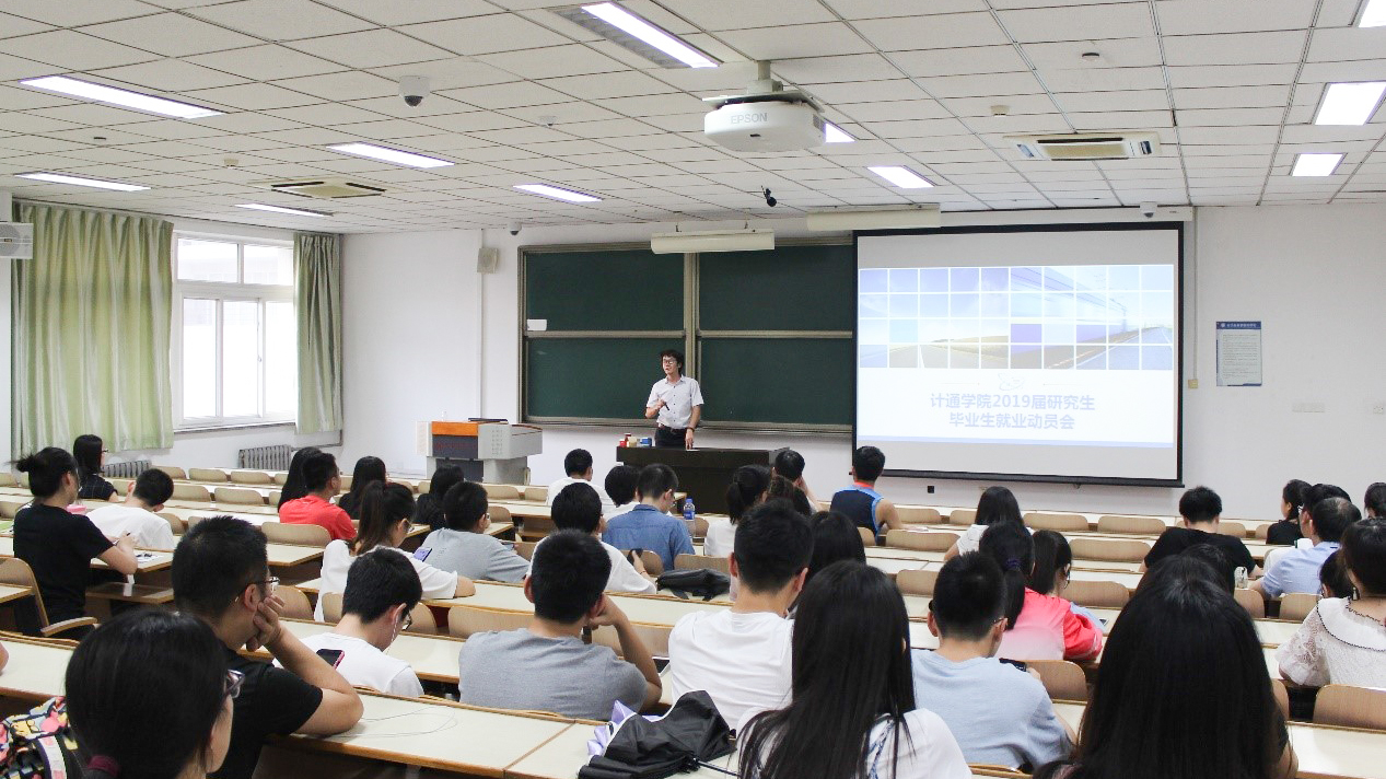 7月27日晚,学院2019届研究生毕业生就业动员会于逸夫楼305教室召开,本次动员会由学院就业指导老师王基镔主讲,2019届全体研究生毕业研究生参加。 动员会伊始,王基...